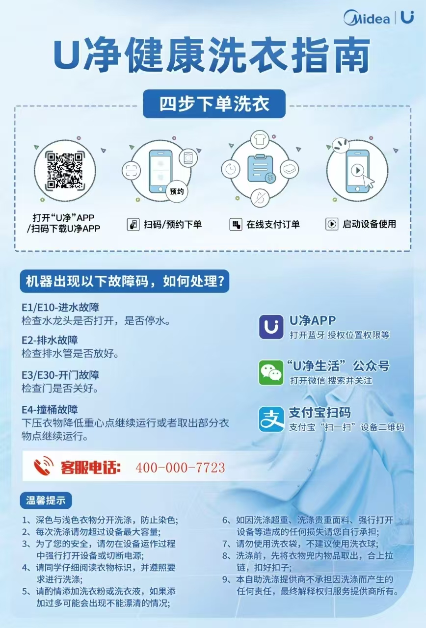 为了提高我校学生公寓住宿环境,学校引进自助洗衣服务运营商浙江尼普顿科技股份有限公司,为广大学生提供自助洗衣服务,供学生自愿使用。